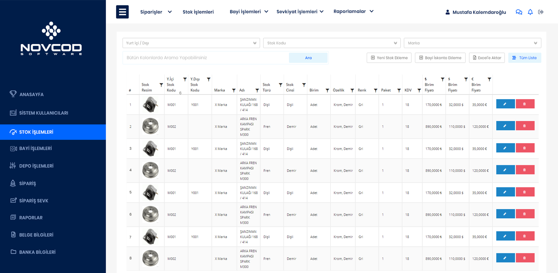 Detaylı BilgiNovcod Bayi Yönetim Yazılımında iki tarih arası filitrelemeli birden çok rapordan oluşur. Gelen Sipariş Raporları Sevk Edilen Siparişler, Tamamlanan Siparişler, İptal Edilen Siparişler, Silinen Siparişler, Günlük Üretim Raporları, Stok Raporları, Sipariş-Sevk Raporları, Bayi Raporları, Depo Raporları gibi istenilen özel raporlamalardan oluşan bölümdür.