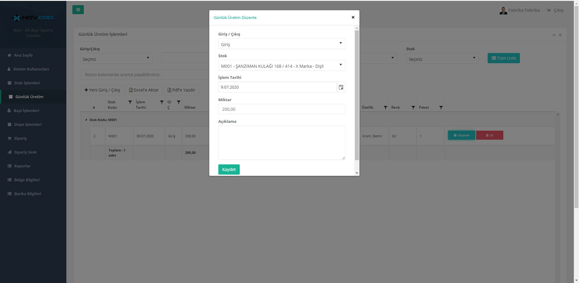 Novcod Bayi Yönetim Yazılımında Fabrika, Bayi, Alt Bayilerin kullanıcılarının tanımlandığı bölümdür. Kullanıcıya ait tüm bilgiler ve yetkiler bu bölümden girişleri yapılmaktadır.